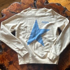 Golden Goose small sweatshirt beige in color w blue star on back and plain front. Super comfortable and chic. Like new / excellent condition. Ask me any questions, make me an offer, three or more items gets 30% off. Check out my other items in my closet. Items will ship same day or next business day.