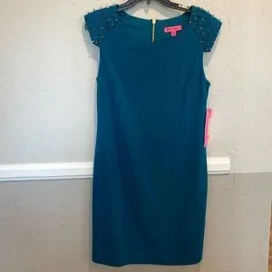 Teal dress with spiked shoulders. Classic Betsey statement piece. Next day shipping. Make me an offer I can’t say YES if you don’t ask!