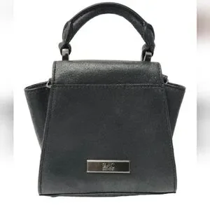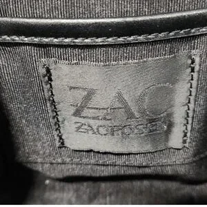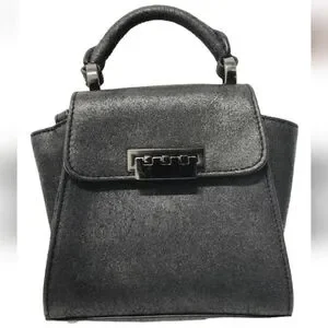 ZAC POSEN Eartha Iconic Mini Top Handle Black Suede Leather Crossbody Bag.