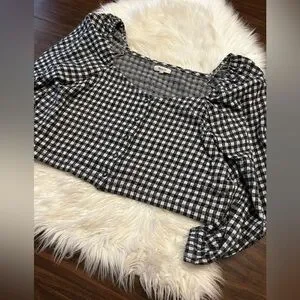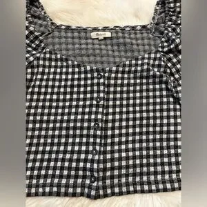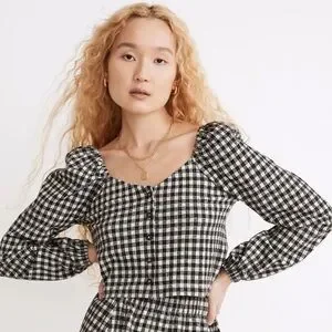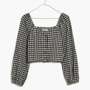 MADEWELL Gingham Puff-Sleeve Button-Front Crop Top