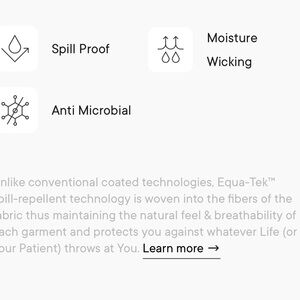 Made with Equa-Tek Liquid repellant fabric