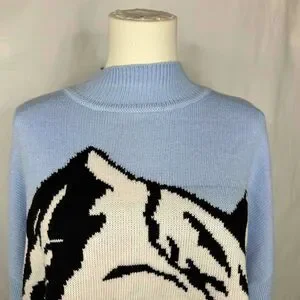 Divided Blue Graphic Crew Neck Long Sleeve Pullover Sweater Women Large Mountain