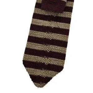 MIKAEL YORK Men's 100% New Wool Knit Necktie LUXURY Red Beige Striped W:3" EUC