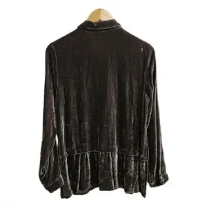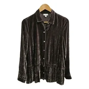 J.Jill brown silk blend velvet button peplum long sleeve top size small