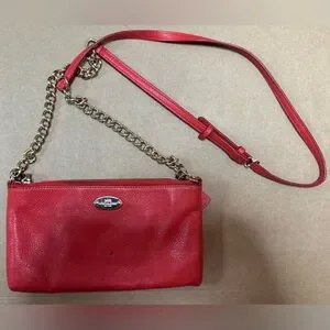 Red/Orange Coach purse with gold hardware. 8.5in x 4.5in
