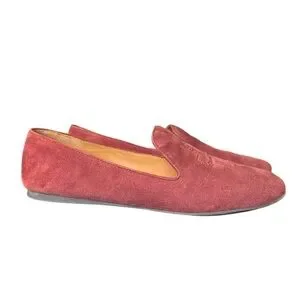 Tory Burch Leigh Rust color Suede Logo Round Toe Slip On Flats Loafers Sz 8.5