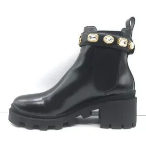 Gucci Trip Jeweled Strap Chelsea Boots Black Leather Size 39.5 NEW