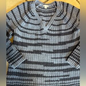 NWOT J. Jill Blue Stripe V Neck Waffle Knit Chunky Cotton Sweater Womens Size Large. Pit to pit measures 20 inches and the length is 27 inches. New never worn!!