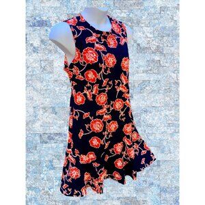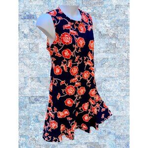 Navy floral sleeveless dress from Shelby & Palmer in excellent preowned condition. Features a fit and flare silhouette, back zip closure, and a ruffled bottom. Size 16.