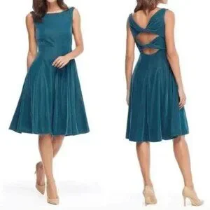 Style tags: velour, velvet, open back, twist detail, A line, fit and flare, event, formal, jewel tone
