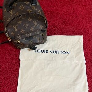 LOUIS VUITTON AUTHENTIC MINI PALM SPRINGS MONOGRAM BACKPACK. NWOT. This backpack was purchased from the Louis Vuitton store and never used. Brand New! No call outs! Pristine condition. Small front exterior pocket. 1 interior compartment. Satin lined interior. Zippers are zippy. Hardware is shiny and impeccable. A gorgeous piece by Louis Vuitton.