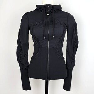 Lululemon Black Dance Studio Reversible Jacket Hooded Stretch Thumbholes Size 4