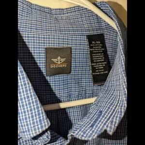DOCKERS Mens Size XL Dress Shirt Long Sleeve Green Plaid Button Up/Blue