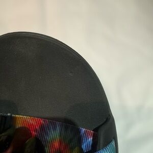 These slides are used and in good condition! They show some typical signs of wear as well as 2 small puncture holes on the foot bed (see pics). These are not noticeable when on the foot. These are super comfy and such a fun design! Size 8