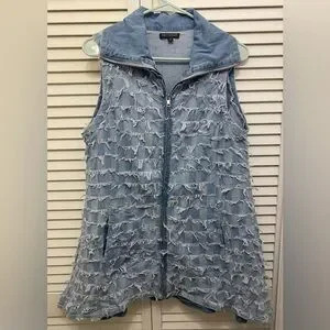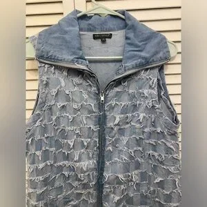 Denim Frayed Zip-Up Vest/Jacket Size Small