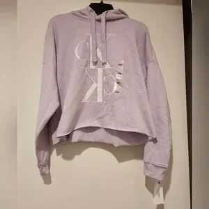 Calvin Klein Jeans women's logo hooded sweatshirt - cozy & comfy, with iconic CK logo at the front & a soft raw hem