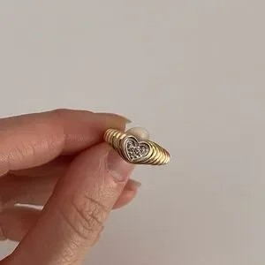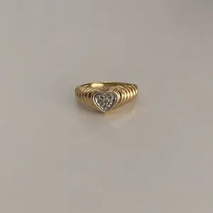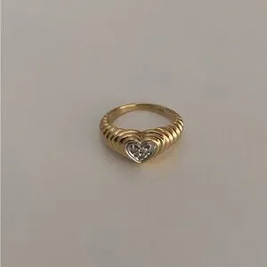 Vintage 14K Yellow Gold Heart Ring w/ Trio of Diamonds set in White Gold