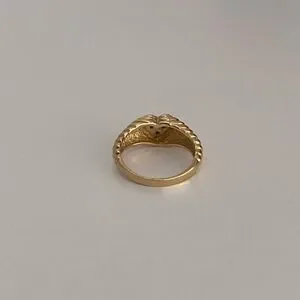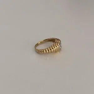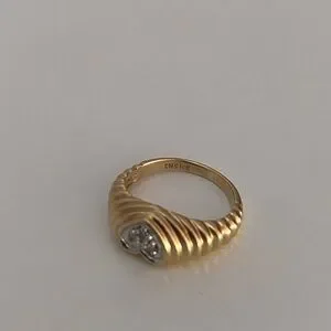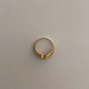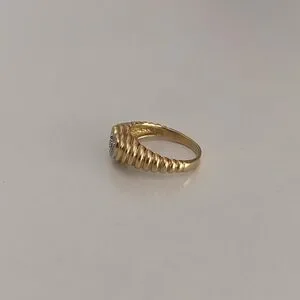 This is a vintage solid 14k gold ribbed ring with a trio of diamonds set in white gold! This ring is in excellent condition! Super comfy on & is so sweet to add to your jewelry collection!