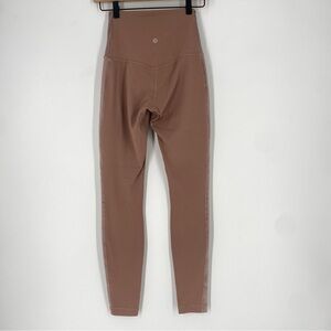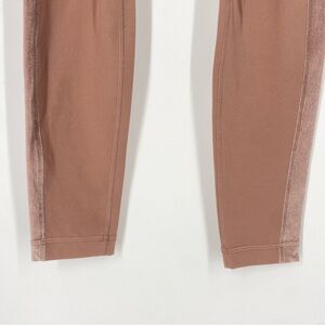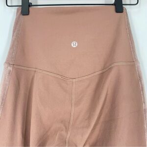 Lululemon Align Super High-Rise Velvet Pant Leggings in color Spanish oak. Lightweight, buttery-soft Nulu fabric wicks sweat and is four-way stretch buttery-soft. Velvet stripe down the sides. Special edition. Good pre owned condition, minor piling as pictured. Length: 28”. Rise: 10”. Waist: 10.5” approximately. Size 4