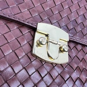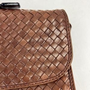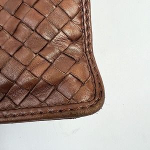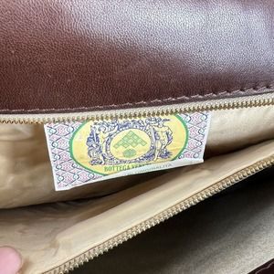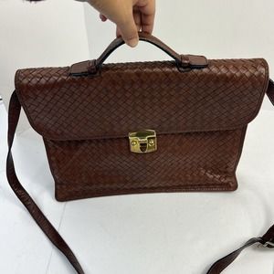 Bottega Veneta Cognac Brown Woven Leather Briefcase Top Handle Gold Buckle