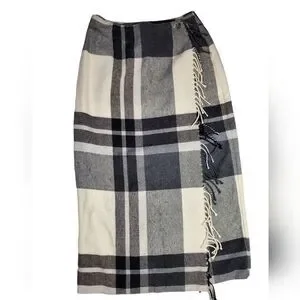 Flannel wool blend wrap skirt with fringe 10