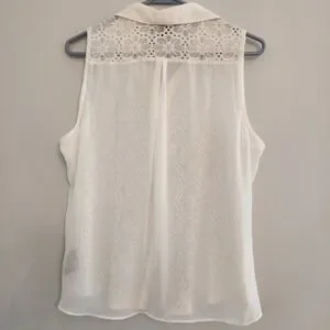 By & By Cream Sheer Printed Front Blouse. Beautiful pattern. Size XL.