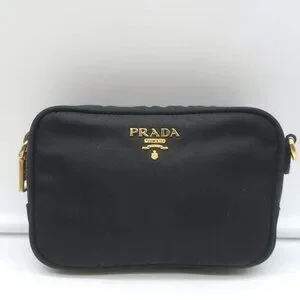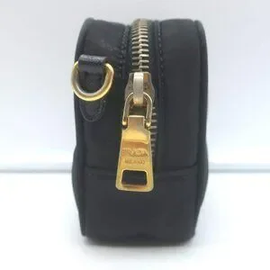 Prada Tessuto Mini Camera Crossbody Bag Black Nylon & Saffiano Leather Clutch