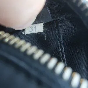 Pre-loved. Good condition. Small brown smudge on back. A couple of very faint white smudges throughout. Hardware is tarnished. Does NOT come with dustbag. Gold Hardware. Zips -**-