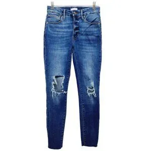 Good American Womens Distressed Skinny Jeans 4/27 Blue Denim