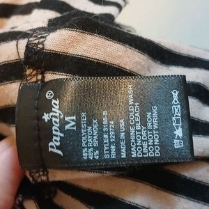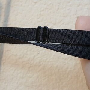 Straps are made of an elastic type material and adjust. Along the upper back there is elastic to allow for a more fitted look. The bust is padded with a thin layer of contoured foam so the dress can be worn braless. No stains, rips or snags. There is a band under the bust which attaches to the skirt and extends to the back in a tie.