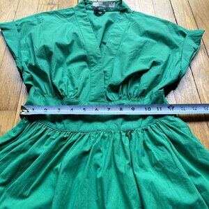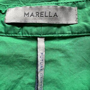 Marella Size 2 Emerald Green Bobbio Cotton Ruched Cap Sleeve A-Line Midi Dress
