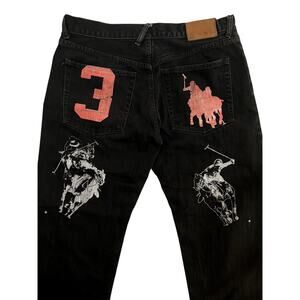 Crown Basics Jeans Mens 36X28 Black Loose Straight Painted Back Y2K Button Fly