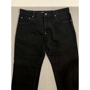 Good Used Condition. No flaws Noticed. Sharp Black with Rear Art. Loose Straight. HEMMED 28" INSEAM. Quality Denim. 5 Pocket. Size 36X28. PLEASE check measurements pictured.