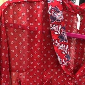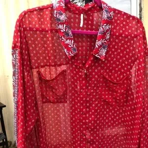 {$13 BUNDLED} FREE PEOPLE Red Blue White Sheer Long Sleeve Top