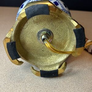 Mosaic Fishnet Blue and White Ceramic Lamp with Brass Base Vintage shade