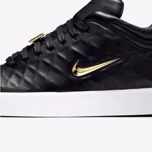NIKE TIEMPO PREMIER 17 Black White Gold SWOOSH & EMBLEM Sneakers Men’s Size 9.5