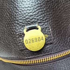 -Details: Chocolate Pebble Leather, raw suede inside, a lot of pockets. Very well made and heavy duty. Real brass hardware. Minor imperfections on the outside that are hard to notice. Inside clean with cardboard tearing on inside flap but still functions fine. Please see all photos carefully.