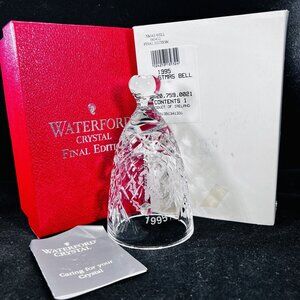 Beautiful and elegant fine solid cut crystal BELL with an inner crystal clapper by WATERFORD in the "Twelve Days of Christmas" series.1995 on bottom - etched design among criss cross cuts and lower staggered fan cuts, starburst cut on the top head knob. "Waterford" is faintly etched on the lower edge. It is in excellent maintained (displayed/used) condition with no chips or cracks, no damage noted...displayed in a curio cabinet.