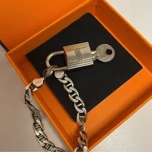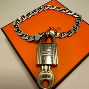 AUTHENTIC Hermes palladium lock and key: Sterling silver bracelet