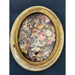 Set of 2 - Vintage Norleans Trade Mark Gold Oval Framed Floral Design Made in Italy