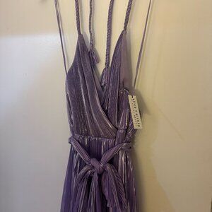 Alice And Olivia Purple Arista Halterneck Accordion Pleat Maxi Dress