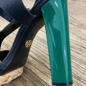 Tory Burch Abella Black Strappy Heels with Green Block Heel