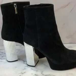 Michael Kors Suede Platform Boot Inner Zipper Black/Silver Size 7