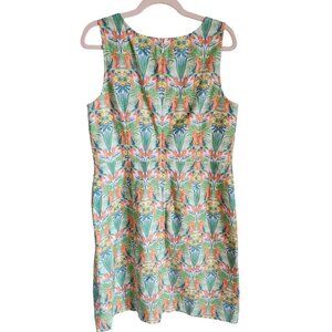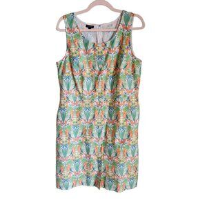 Talbots Dress 12 Green Multi Tropical Parrot Bird Floral Sleeveless Buttons NEW