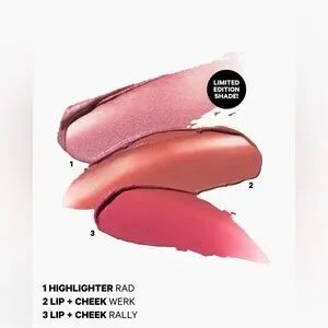 This limited-edition makeup gift set features a mix n’ match trio of our best-selling Lip + Cheek sticks, plus an exclusive new Highlighter shade you can only get in this set.
