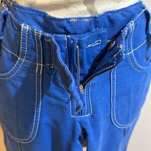 Miss Sixty Wide Leg Blue Stitching Details Zip Up Vintage Pants Waist 28”