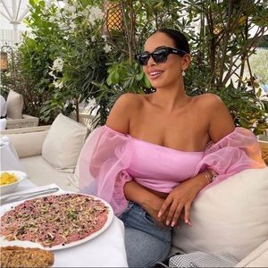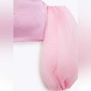 Brand New ZARA BLOGGERS FAV CONTRASTING ORGANZA pink TOP Size Small