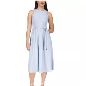 Michael Kors Petite Smocked Tie-Waist Midi Dress