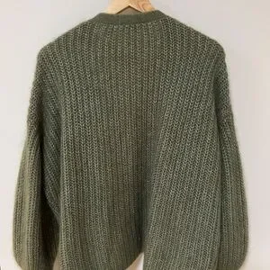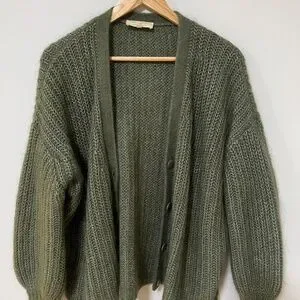 “Wool and kid mohair cardigan with long slightly puffed sleeves