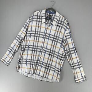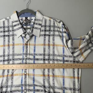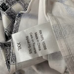 Scully Men Shirt XXL White Paisley Plaid Pearl Snap Button Long Sleeve Button Up